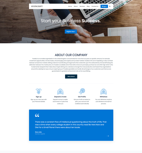 Choose our exclusive HYIPSCRIPT template with incomporable design at a affordable price and make your business stand out in the crowd